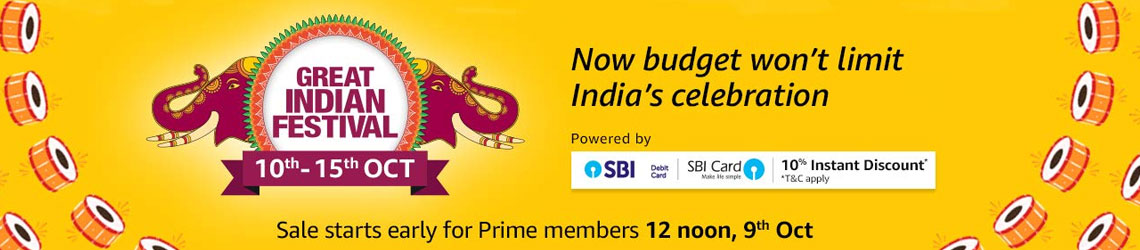 Amazon India brings the Great Indian Sale from 16th-23rd October 2020. Enjoy the Best Deals and Discounts Online on Amazon.in. The sale will be available on both website and Amazon App. Get additional 10% instant discount on HDFC Credit, Debit Cards and EMI.