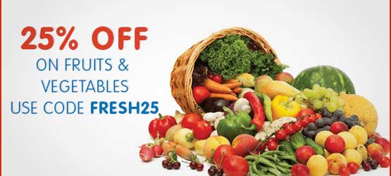 Get 25% off on seasonal fresh fruits and vegetables.Apply promo code to avail the offer.