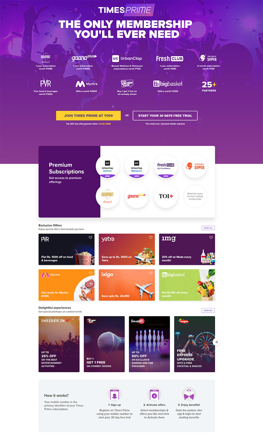 Get the Times Prime Premium Membership + 25 Partner Memberships & Exclusive Offers at Rs 999/year only! Additional 50% OFF using Payment Options and 30-days Trial.