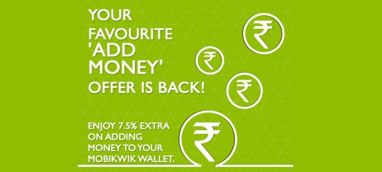Add Rs 200 to your Mobikwik Wallet and Get 7.5% additional cashback Free.
