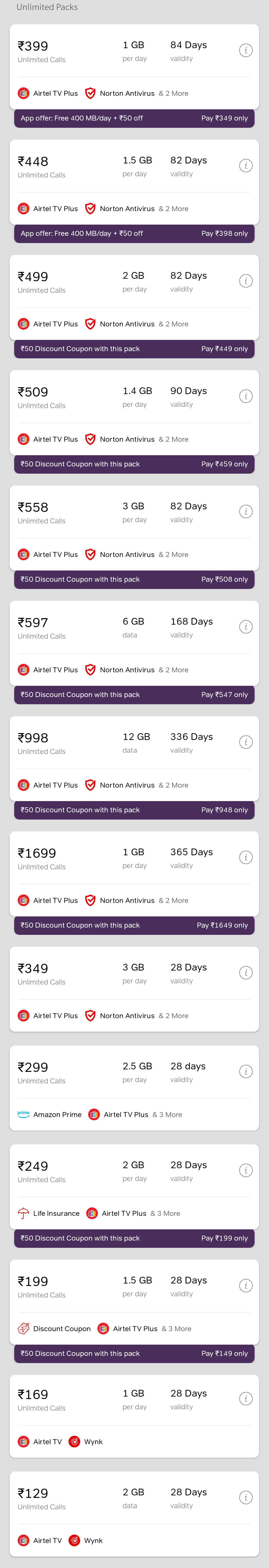 Now choose from a range of best-selling Airtel prepaid recharge packs which provide you unlimited calling, 4G internet, prepaid recharge offers online.