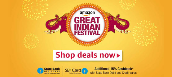 LAST CHANCE!! Checkout Amazon.in Great Indian Festival Diwali Sale (25-28 Oct)! Get Extra 15% Cashback on SBI Cards.