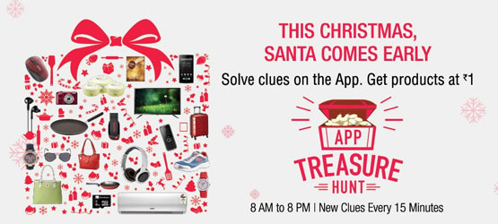 Santa comes early! Amazon.in presents the Christmas App Treasure Hunt products at Re. 1 every 15 minutes from 8am – 8pm, from 22nd to 23rd December 2015. Check out the contest on Amazon.in App now!