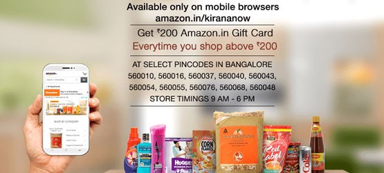 Amazon.in Offer: Amazon.in Grocery/Kirana Rs 200 Gift Card on Order of Rs 200