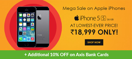 Buy the Apple iPhone 5S 16GB at Rs 18,999 only at Infibeam + Extra Discounts [Lowest Price Online]. Use coupon code at checkout for discount.