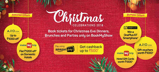 BookMyShow Offer: Book Christmas Eve Dinner & Parties in your City at up to 70% OFF + Rs 500 Cashback on Amazon Pay