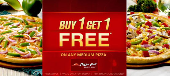 Pizza Hut Coupon: Buy 1 Get 1 FREE Pizza on all Medium Pan Ranges at Pizza Hut Online Order