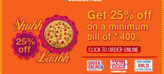 Domino's Pizza Coupon: Diwali with Dominos Pizza – 25% OFF on a minimum bill of Rs 400