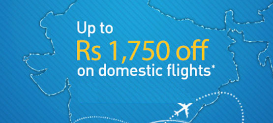 Get Up to Rs 1,750 off Domestic Flights in India. Simply book your trip right here with the promotion code on the trip details page before August 31, 2015 to avail this fantastic deal.