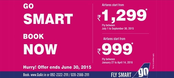 Book your GoAir’s flights across India between 26th to 30th June 2015 at fares starting from: