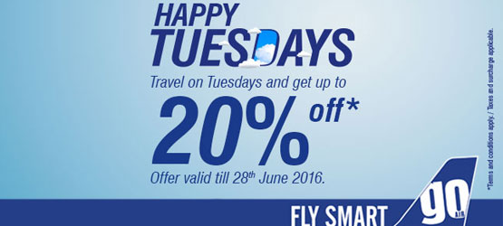 Traveling on Tuesdays just got better! GoAir announces low fare Tuesdays. Now fly with GoAir on Tuesdays and get 20% off. So hurry and book your tickets to make the most of it.