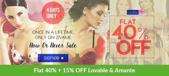 Get Flat 40% OFF + Extra 15% OFF Lovable & Amante Women Lingerie at Zivame.com.