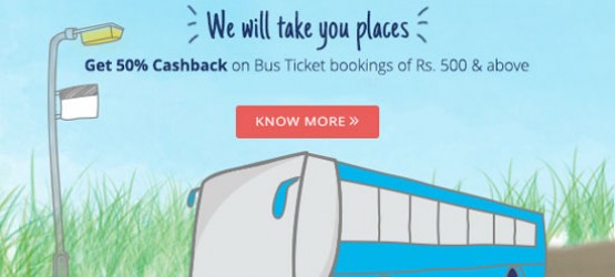 Get Flat 50% Cashback on Bus Ticket bookings of Rs 500 and above at Paytm.