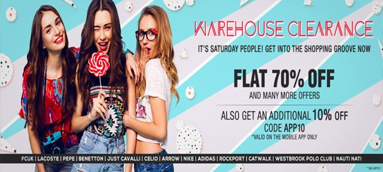 Get flat 70% off on clothing,footwear,sun glasses and accessories for men and women.