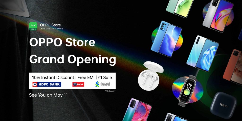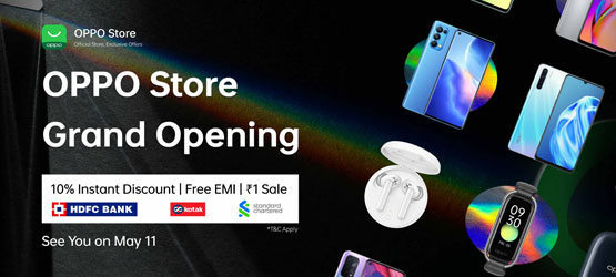 OPPO Offer: Flat Extra 10% OFF + Free EMI + Free Gifts at the OPPO India Online Store Launch