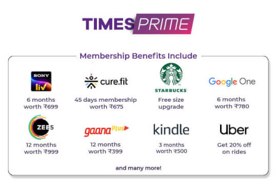 Times Prime makes sure by providing you a membership that this is the only membership you’ll ever need by giving 20+ subscriptions such as TOI Plus, ETPrime, KinderPass, ZEE5, Flipkart Travel, Pickyourtrail, Gaana Plus, and Google One along with special offers in 25+ popular brands like Myntra, Lifestyle, The Man Company, MensXP, Starbucks, Uber, and Chaayos.