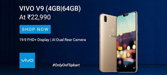 IPL 2018 Offer! Get Flat Rs 1000 OFF on Vivo V9 Full Screen Phone at Rs 22,990 only + Exchange Offers of Rs 17,000 at Flipkart and Amazon. Also avail No Cost 0% EMI.