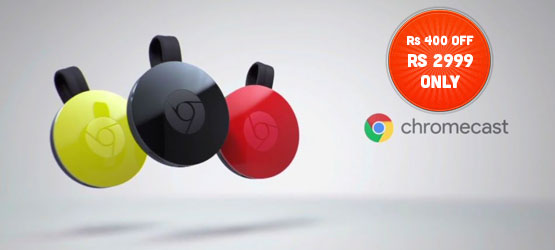 Get Flat Rs 400 OFF on Google Chromecast 2 at Rs 2999 + 10% Citibank Cashback.
