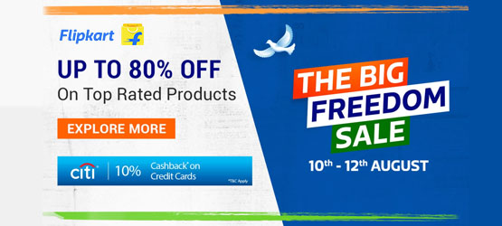 Flipkart Offer: Flipkart Big Freedom Sale (10-12 August) – Blockbuster Deals + 10% OFF on Citibank Cards