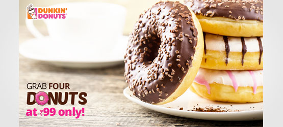 Get 4 Donuts at Rs 99 ONLY at Dunkin Donuts across 10 Locations in India – New Delhi, Haryana & Uttar Pradesh. Buy a Nearbuy Groupon Voucher and show it at the counter.