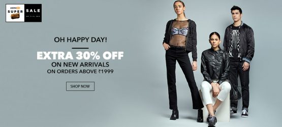 Jabong Super Sale!! Get Extra 30% Off On New Arrivals. Additional 10% Cashback using Pockets Wallet / 15% Cashback using Mobikwik Wallet.