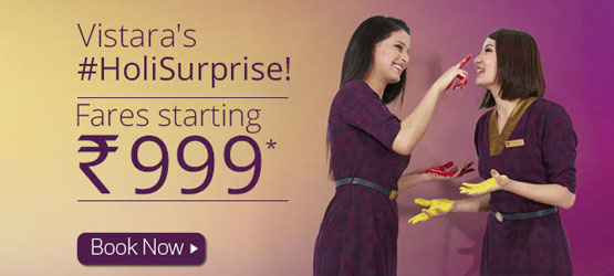 Air Vistara Offer: #HoliSurprise Air Fares starting Rs 999 on Air Vistara