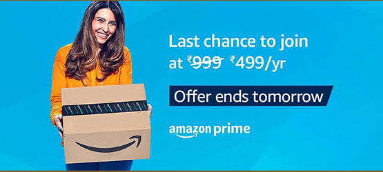 Last chance to join Amazon.in Prime at Rs 999 Rs 499/year! Offer Ends 30th October