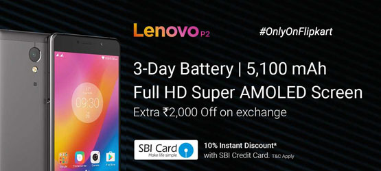Flipkart Offer: Lenovo P2 Smartphone at Rs 16,999 (3-day Battery) + 10% OFF SBI Cards + Extra Rs 2000 Exchange Value