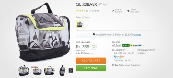 Flipkart Offer: #Loot 77% off on Original Quiksilver Bag