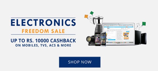Electronics Freedom Sale! Up to Rs 10,000 Cashback on TVs, Mobiles, Cameras & more at Paytm