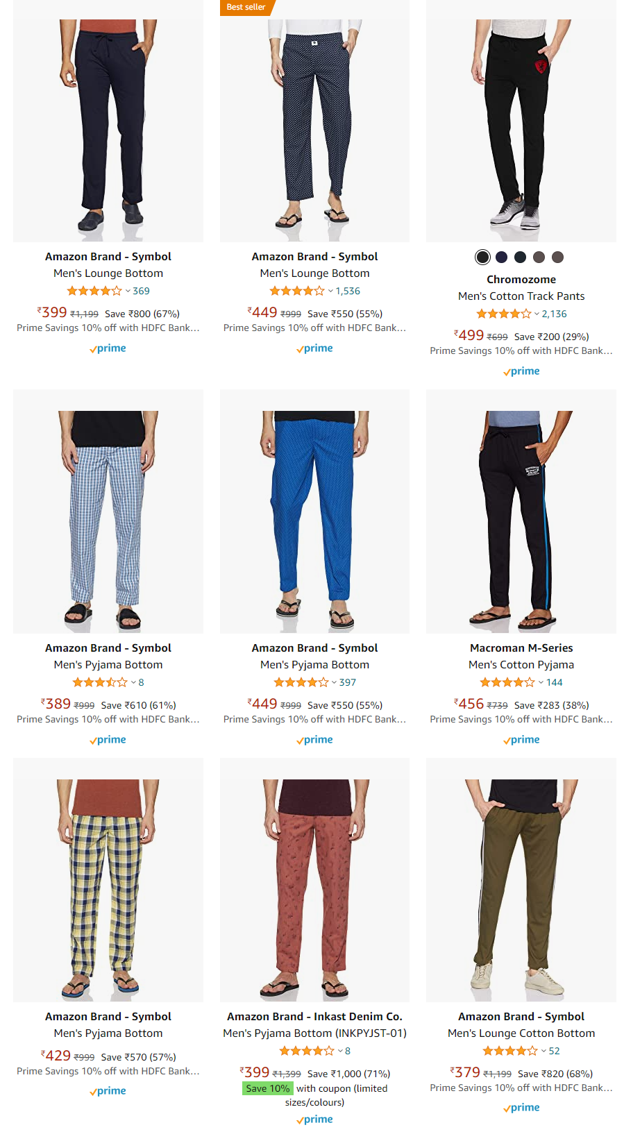 Amazon.in Offer: Men’s Cotton Pyjamas & Lounge Pants for Home & Sleepwear at just Rs 359 – Top Brands