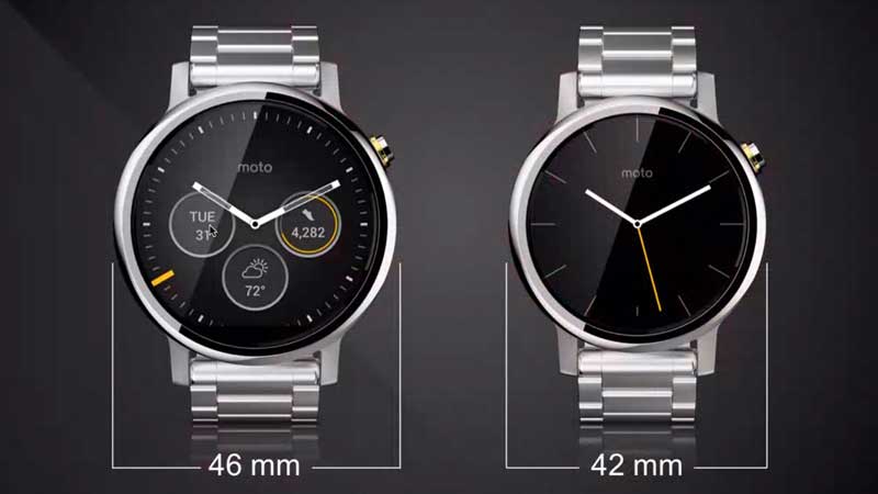The Moto 360 2nd Gen is available in 2 size options – 42mm & 46mm with multiple options for metal and leather bands suitable for Men & Women.