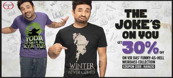Get flat 30% off on vir Das funny as hell weirdass collection.