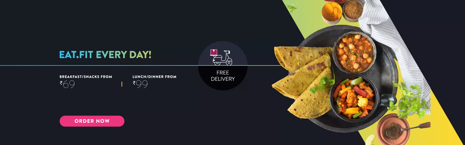 Order Healthy Breakfast, Lunch, Dinner starting at Rs 69 only at Eat.Fit.