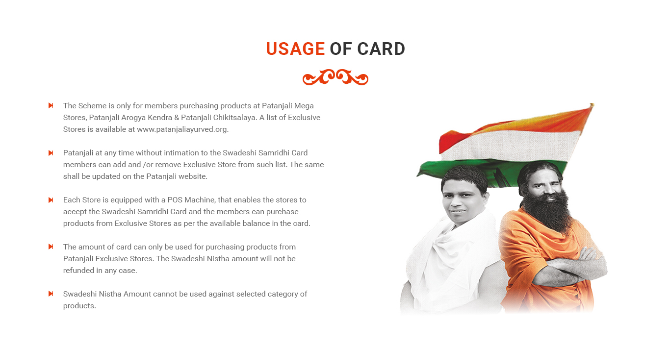 Get a Patanjali Swadeshi Samridhi Card – Membership at Rs 100 only. Up to 10% OFF on all Patanjali Ayurved Products.