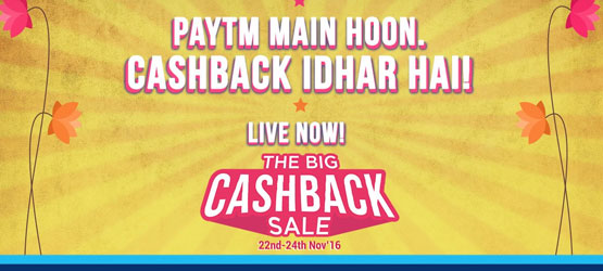 Paytm Big Cashback Sale 22-24 Nov 2016! Get Up to 70% OFF + 60% Cashback.