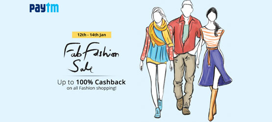 Big Day Fashion Sale at Paytm from 12th-14th Jan 2016!! Get Upto 100 % Cashback on all Fashion Shopping for Men, Women & Kids. Grab the Deal ! Huge Cashback on Apparel, Accessories and Footwear.