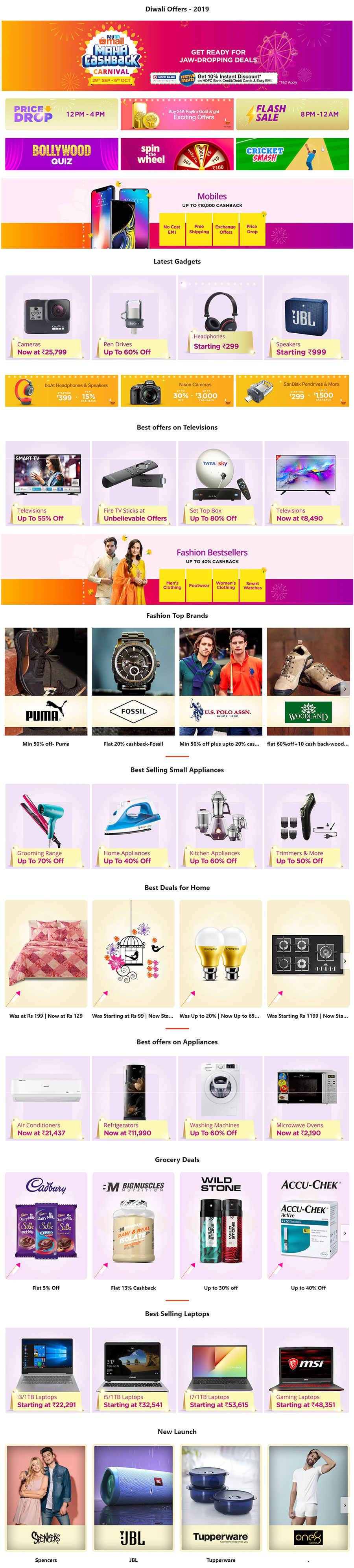 Some of the key product categories at Paytm Mall include: