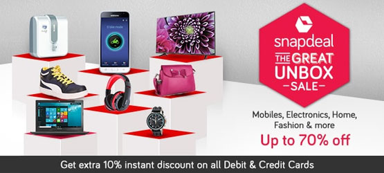 Checkout Snapdeal Great Unbox Sale! Blockbuster Deals up to 70% OFF + 10% OFF on All Credit/Debit Cards.