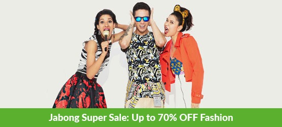It’s Jabong Super Sale this Festive Season. Get Up to 70% OFF on fashion – choose from a wide range of clothing, footwear, watches, sunglasses, jewellery and many more for men, women & kids.
