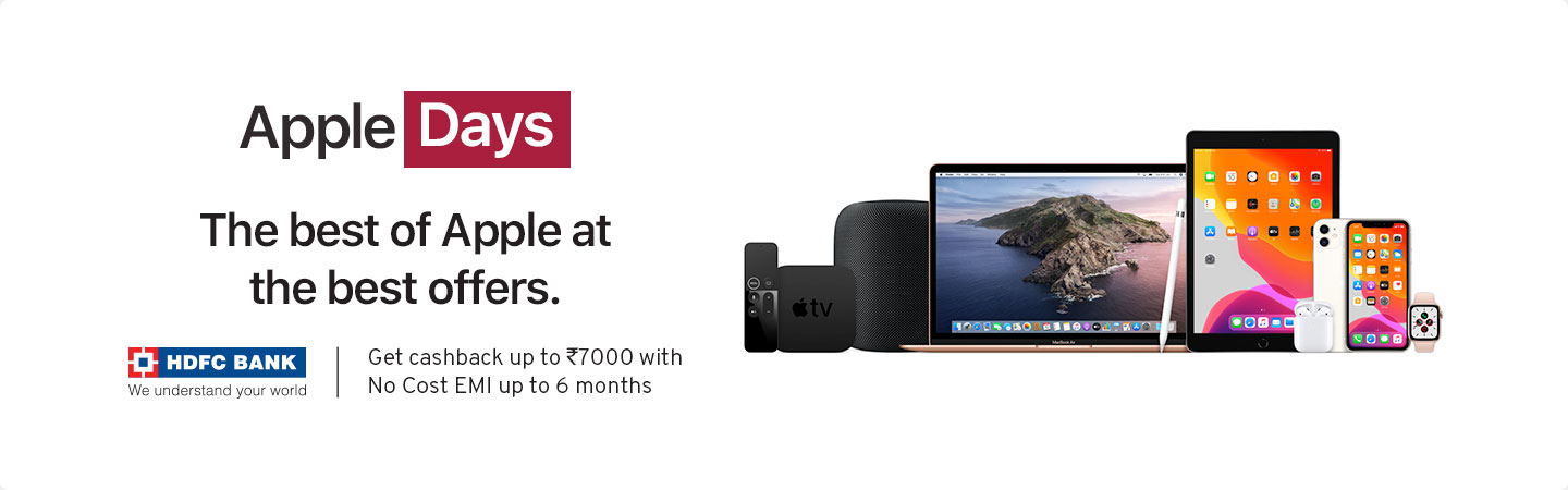• Instant Discount on Apple products purchased with HDFC Bank Debit and Credit Cards