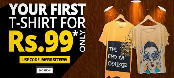 Buy your first tee at Rs 99 at Freecultr. Choose from wide range of styles. Apply coupon code to avail the offer.